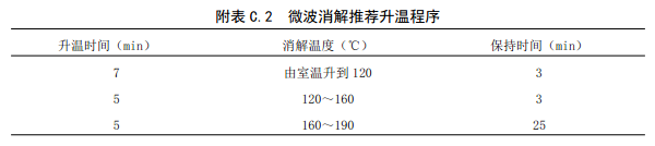 C.3.1:固體廢物種類較多,基體差異較大,在消解固體廢物時各種酸的用量、消解溫度和保持時間可視消解情況酌情增減。