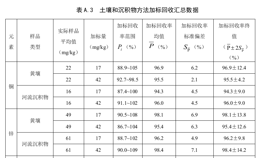 家實驗室對不同類型的土壤和沉積物統一樣品進行了測定,方法的重復性和再現性等精密度數據見表A.1。