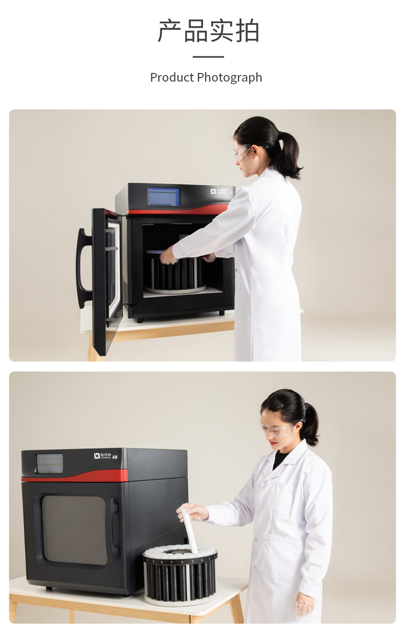 格丹納A8微波消解儀具有高效、實用、準確安全的前處理設備,是輔助AAS、AFS、ICP、ICP-MS元素分析和GC、HPLC、GCMS等分析前消解的好幫手,20分鐘內完成大部樣品的處理,如消解、萃取、蛋白水解、濃縮、干燥和有機合成等。