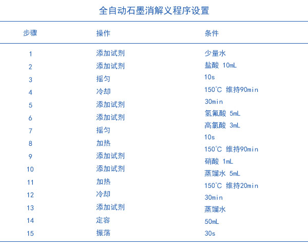 電熱板消解操作簡單,一次性可分析多個樣品,在各大實驗室中應(yīng)用比較廣泛,但是消解時間比較長,敞開式的加熱消解其酸霧對人員身體造成影響。全自動石墨消解儀多孔設(shè)計可以實驗大批量樣品處理,石墨包裹式消解加熱均勻性高,實驗整個過程只需要電腦設(shè)定好程序一鍵啟動就可以自動完成消解,無需人員值守,實驗結(jié)果滿意,消解速度快、效率高、大大解放人力操作,安全,數(shù)據(jù)分析完全達到標(biāo)準(zhǔn)要求。