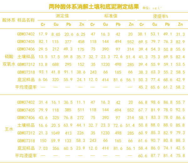 4.2 硝酸-雙氧水和王水測定