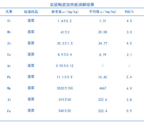 Cr,Mn,Zn,Cu,Ni,Pb,Mg,A1和Fe標準溶液(1000mg/L),菠菜GBW10015國家標準物質。HNO3為BV級;H202 。