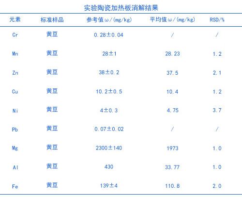 實驗電熱板消解黃豆測定重金屬基本滿足要求,數(shù)據(jù)比較穩(wěn)定可靠,電熱板消解可以大批量處理分析樣品,節(jié)省了時間,實驗室比較常規(guī)的儀器設(shè)備就可以滿足實驗操作了。