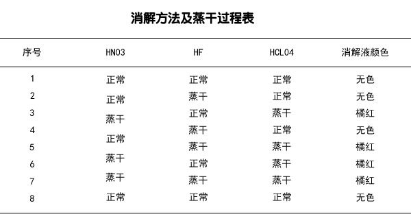 試劑:硝酸(HNO3)、氫氟酸(HF)、高氯酸(HCLO4)、鹽酸(HCL)均為優級純。