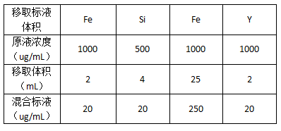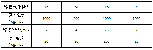 2.4Fe、Si、Ca、Y標準儲備液:1000ug/mL;