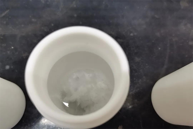 在恒溫220℃馬弗爐中消解1小時;取出冷卻后擰開蓋子,在實驗電熱板中蒸至近干,約2mL,用5mL硝酸和少量水分清洗消解罐,出現白色結晶物,再加入5mL硝酸于220℃電熱板消解15min,蒸至體積小于20mL;