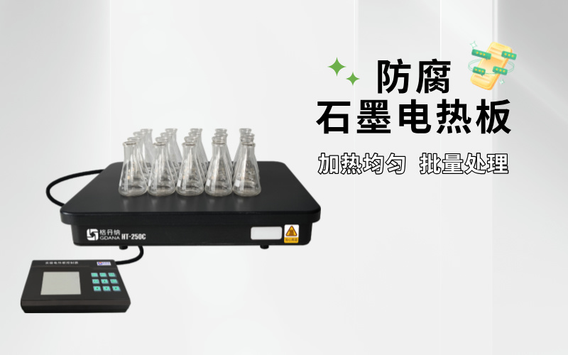 2. 石墨電熱板:石墨電熱板以石墨為表面加熱材料,具有優秀的耐高溫性和耐腐蝕性。石墨的導熱性好,能夠在高溫下迅速而均勻地傳遞熱量,不易產生形變或損壞。格丹納石墨電熱板HT-250C另外在加熱臺面增加特氟龍涂層防止強酸堿腐蝕。